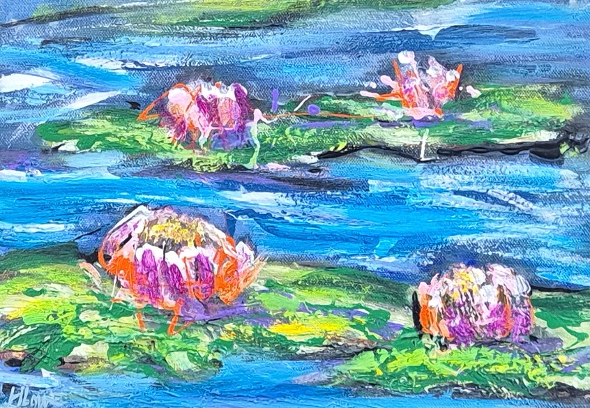 Original oil painting of water lillys Ballyvaughan, Burren, Co. Clare. Painting size is 25cmx35cm